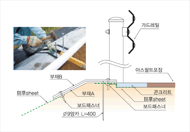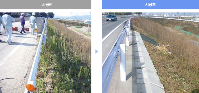 노견부와 법면부를 일체화하였기 때문에 설치후 깨끗하고 미려한 상태가 유지됩니다.