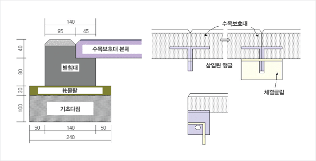 : 투수공을 통한 통기, 수분흡수, 채광으로 수목생육 조건을 만족